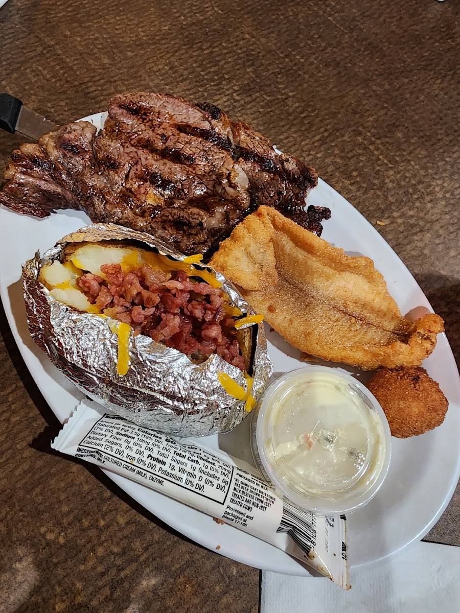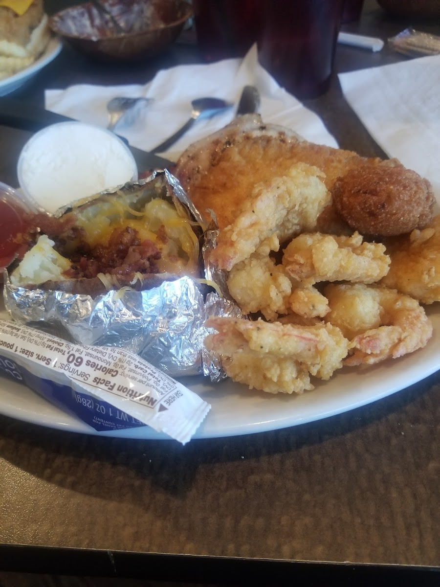 Had early dinner today. The pork chops a shrimp. So much food for the price, I brought 1 porkchop home.. Our server, Capri was just the sweetest. And our glasses never got anywhere near empty. It's just a great place to eat. We enjoy everything we have had there..